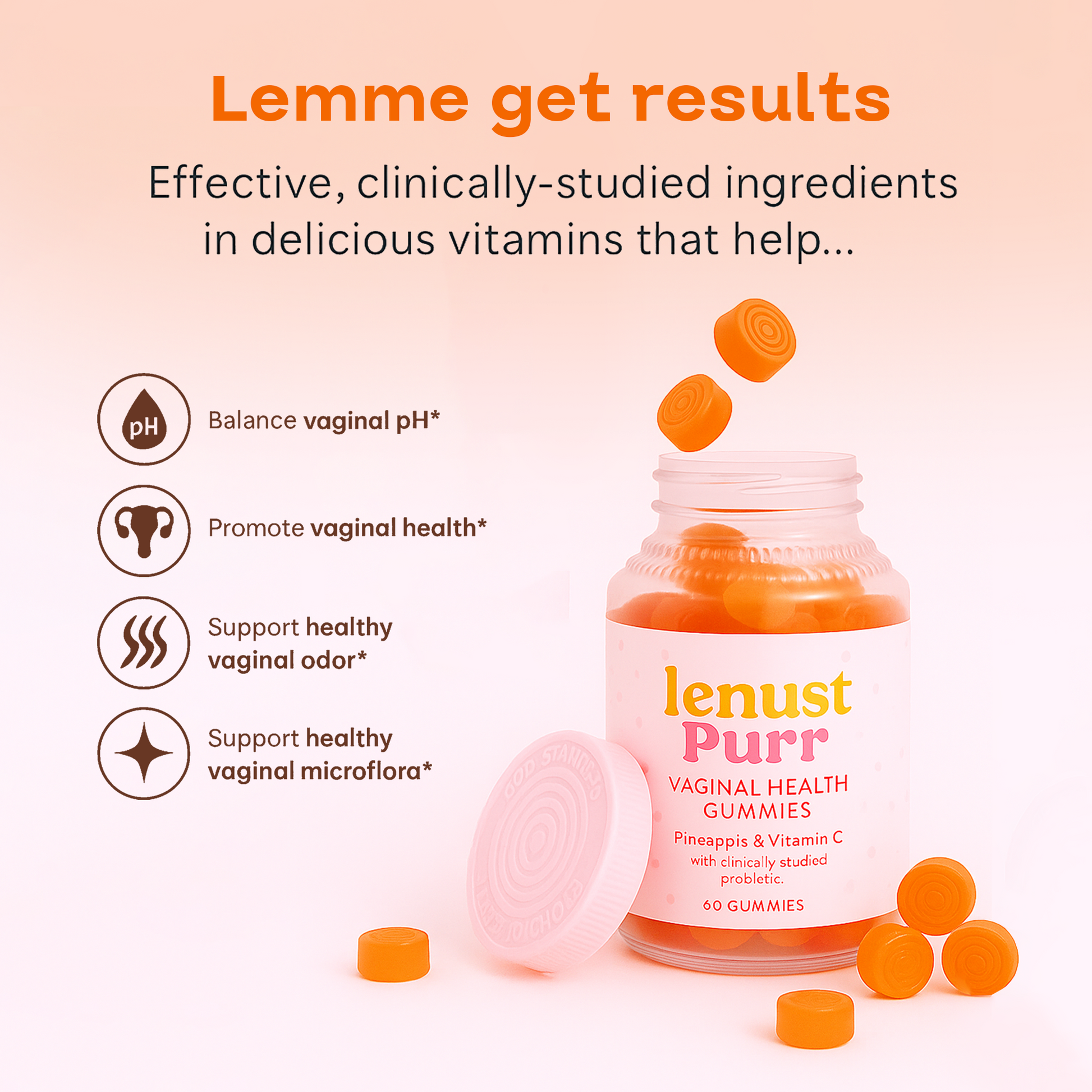 Kyvyus Purr is formulated with a clinically-studied dose of SNZ 1969™ probiotics, demonstrated to support vaginal health.* Additionally, our gummies include 100 mg of real Pineapple Extract (per serving) and antioxidant Vitamin C.